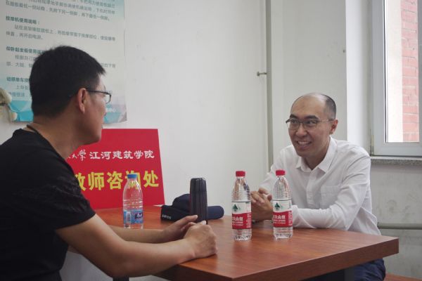 为了保证新生及家长尽快了解学院的学科建设及学生的学业规划,学院在男、女生宿舍楼新生住宿区域设立“专业教师咨询处”,邀请石平、吴文两位专业教师在专业学习、课程实践、生涯规划与就业前景等几个方面,为学生和家长提供专业咨询与分析,提前让其了解专业背景及发展方向。