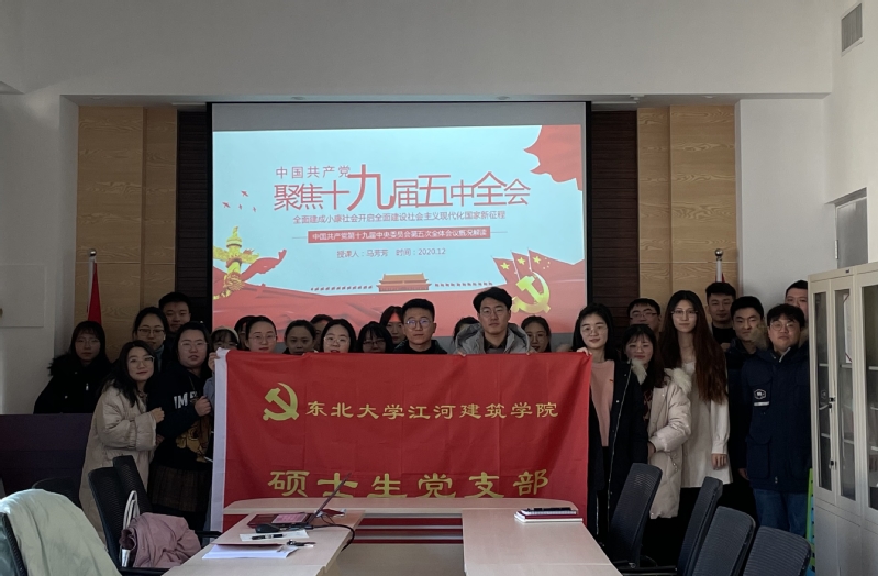 12月11日上午,学院硕士生党支部在建筑馆A409开展“聚焦十九届五中全会”主题党课,支部全体党员和积极分子参加,党课由支部书记马芳芳讲授。