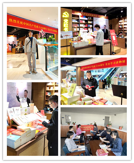 当日,学院各党支部开展“学党史·品书香”读书交流活动。学院党委在活动前期为各党支部购置了《中国共产党简史》等党史相关书记,师生党员们通过“学习强国”、腾讯会议等线上平台和前往玖伍文化城“党史学习读物展”等实体读书平台开展读书交流活动,从书香中学习历史,从党史中汲取力量,同时围绕“学党史·品书香”主题分享了读书心得。