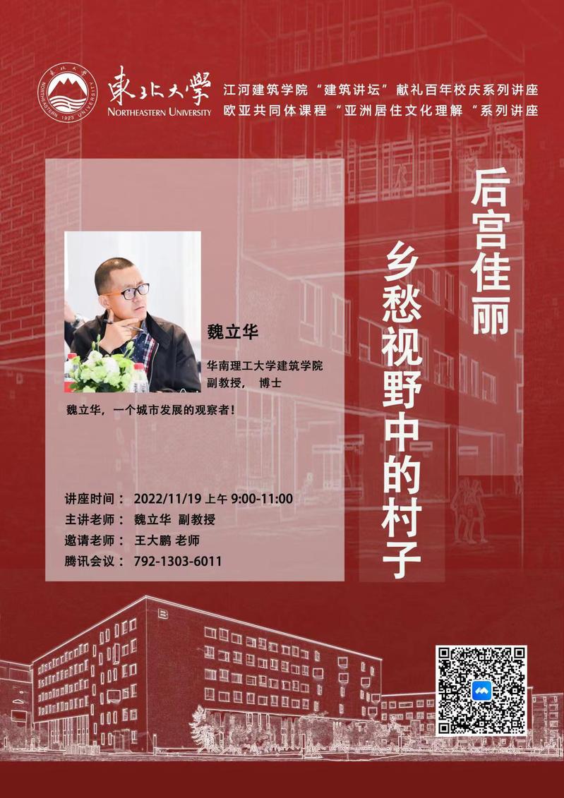 11月19日,应城乡规划系王大鹏老师邀请,华南理工大学建筑学院魏立华副教授做客乐动注册“建筑讲坛”(暨献礼百年校庆系列讲座),为我们做题为《城乡规划中的“乡愁”以及村庄规划的逻辑》的学术讲座,学院师生30余人参加线上交流。