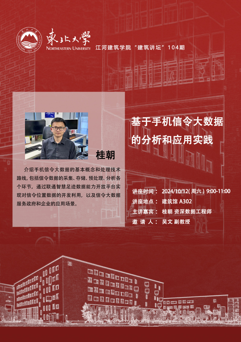 建筑讲坛(104期)预告:基于手机信令大数据的分析和应用实践