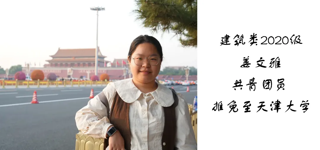 “实践力行,志在奉献”。曾参与“中日联合设计工作坊”等国际交流项目,用行动诠释了青春的意义,不断拓宽自己的能力边界,用努力和坚持书写属于自己的精彩篇章。未来将继续在建筑设计及其理论领域深造,为城市发展贡献自己的力量。